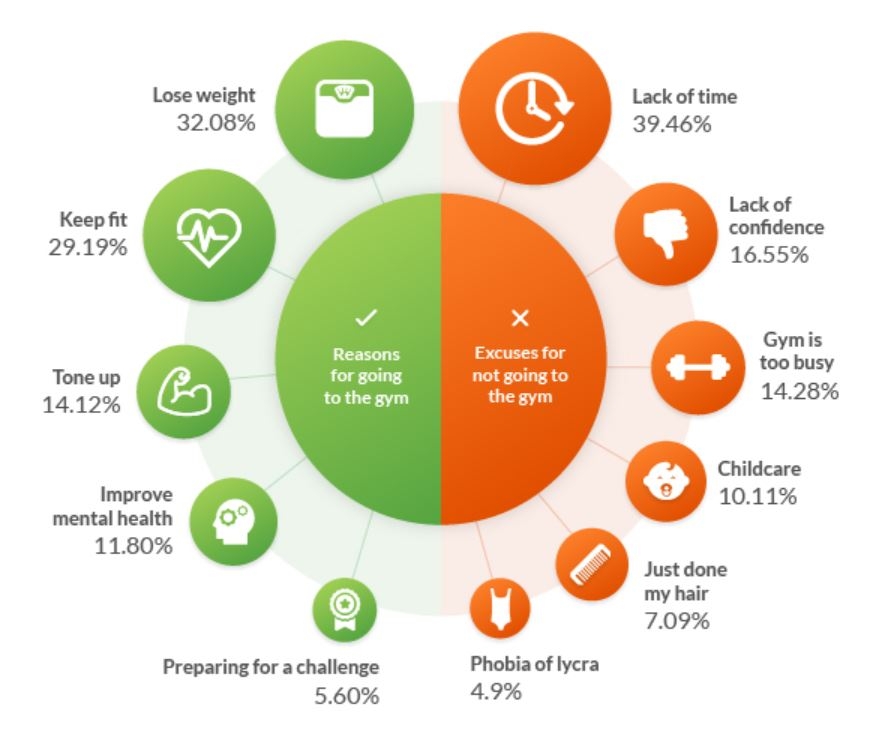 Removing obstacles is an infallible strategy to improve gym member engagement. While you can't address all of the reasons (like the phobia of lycra), you can work on crafting a template for 30-minute workouts or create spaces to workout without an audience for the less confident members.