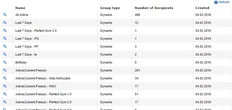 La plateforme de gestion des clubs de PerfectGym vous permet de constituer des groupes de membres en fonction de leurs principaux centres d'intérêt en matière de fitness, comme ci-dessous.